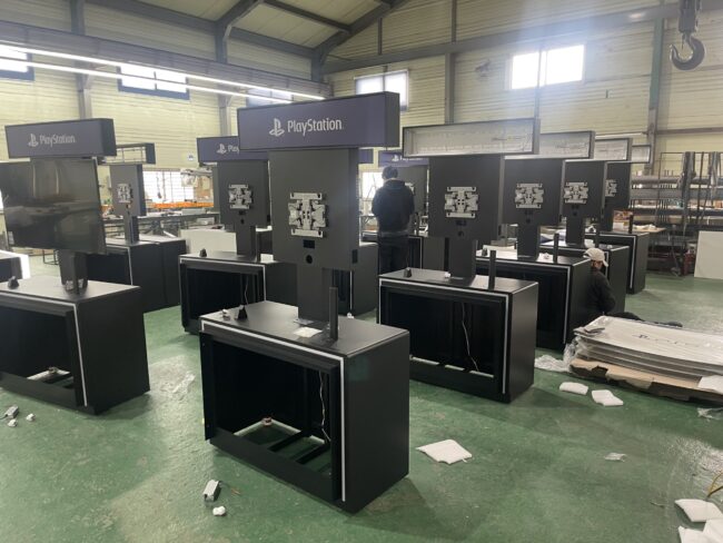 매대는 높이 1950mm, 가로 1300mm, 세로 750mm로 대형 사이즈이며, 내외부에 LED 조명 및 시트지 마감을 적용하여 시각적인 완성도를 높였습니다. 정확한 설계와 도면 작업이 제품의 완성도를 결정짓는 중요한 단계입니다. 고객사에서 요청한 디자인을 반영하여 3D 모델링 및 제작 도면을 진행하였으며, 이후 레이저 가공과 절곡 작업을 위한 도면 최적화 과정을 거쳤습니다. 내외부에 LED 조명을 설치하여 플레이스테이션 브랜드의 아이덴티티를…