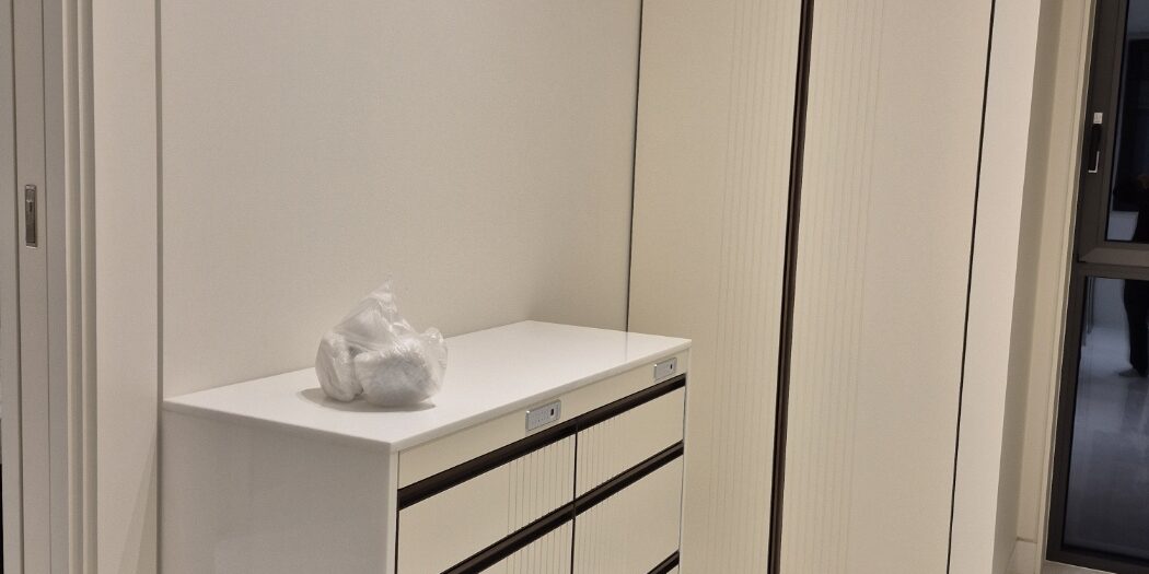 전체적으로 군더더기 없이 정돈된 고급 드레스룸 분위기를 완성했습니다.